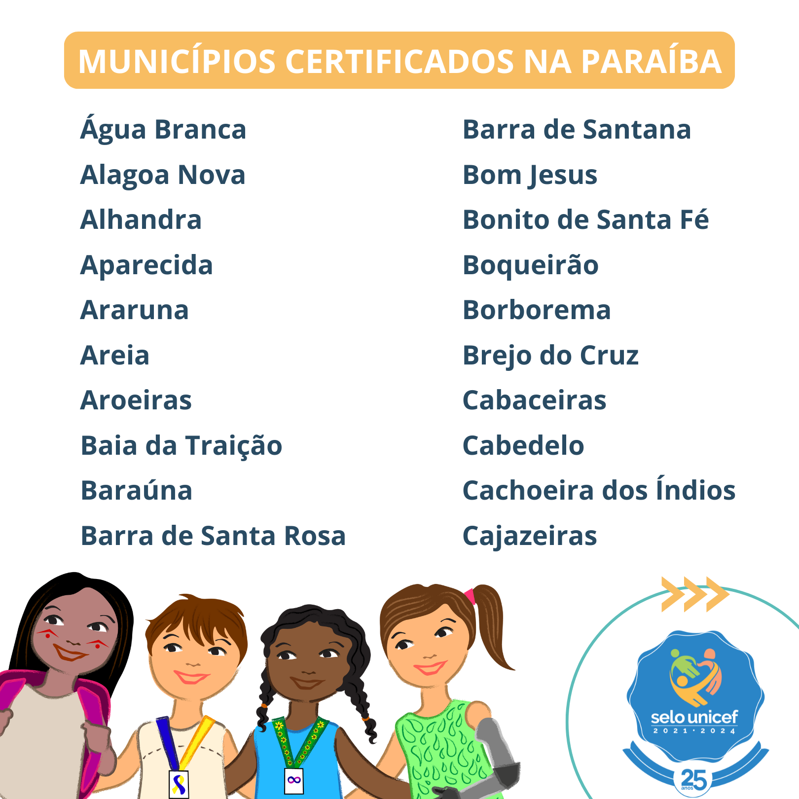 Home > Notícias  > 88 cidades da Paraíba melhoram condições de vida de crianças e adolescentes e conquistam Selo UNICEF > 6